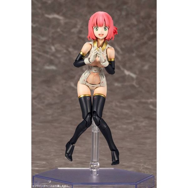 With her huge lance and shield, she's impossible to miss; her lance can also become a flying mecha-bike for her to ride on! Extra stands are included to support her weapons. She has 3 flexible mechanical tentacles attached to the back of her head, along with 3 interchangeable facial expressions. She can be enjoyed in her mechanical-knight form, or just as a highly posable figure of a cute girl, and her 3mm ports make it possible for her to use weapons and armour from Frame Arms, Frame Arms Girls, Hexa Gear and M.S.G. parts!