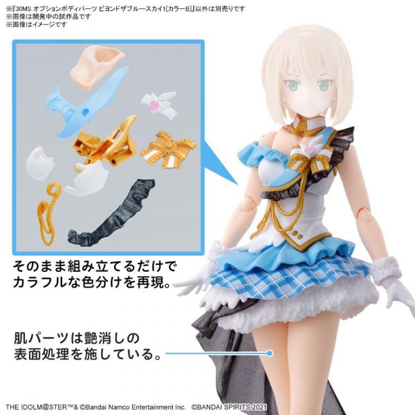 Bandai brings us the "Beyond the Blue Sky" costume, as seen in "The IdolM@ster Shiny Colors," as a set of option body parts for your "30MS" (30 Minutes Sisters) action-figure model kits!